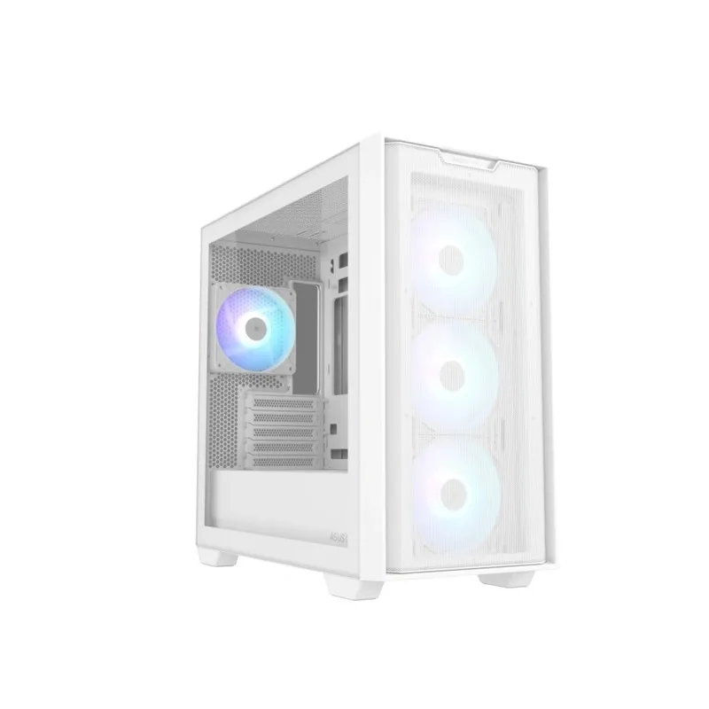 Kućište Asus A21 PLUS TG ARGB bijela nudi elegantan dizajn sa bijelim završetkom i ARGB osvjetljenjem. Opremljeno je sa dva USB 3.0 porta i HD Audio priključkom. Podržava ATX, Micro-ATX i Mini-ITX matične ploče, pružajući fleksibilnost za različite konfiguracije.