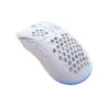 MS NEMESIS M700 Bijeli je bežični gaming miš s modernim dizajnom i RGB osvjetljenjem. Povezuje se putem 2.4 GHz USB prijemnika, nudeći slobodu kretanja i preciznost.